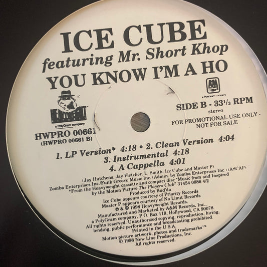 Ice Cube Feat Mr Short Khop “My Loved One” / “You Know I’m A Ho” 8 Version 12inch Vinyl
