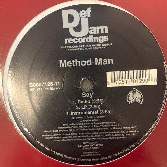 Method Man “Say” 6 Version 12inch Vinyl