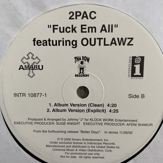 2pac Tupac “Feat Trick Daddy “Still Ballin” / “Fuck Em All” Feat Outlawz 5 Version 12inch Vinyl