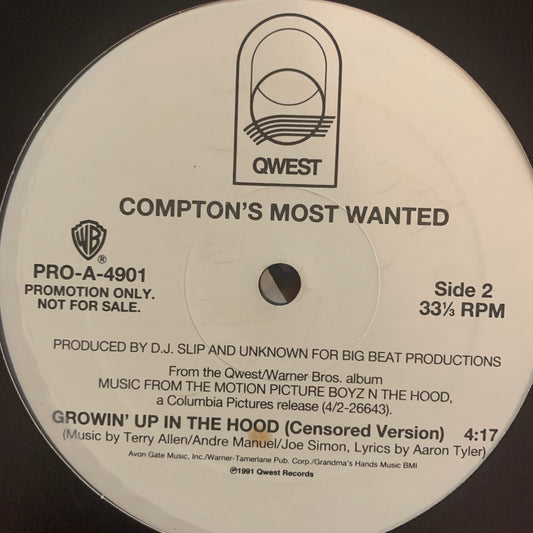Comptons Most Wanted “Growin’ Up In The Hood” 2 Version 12inch Vinyl