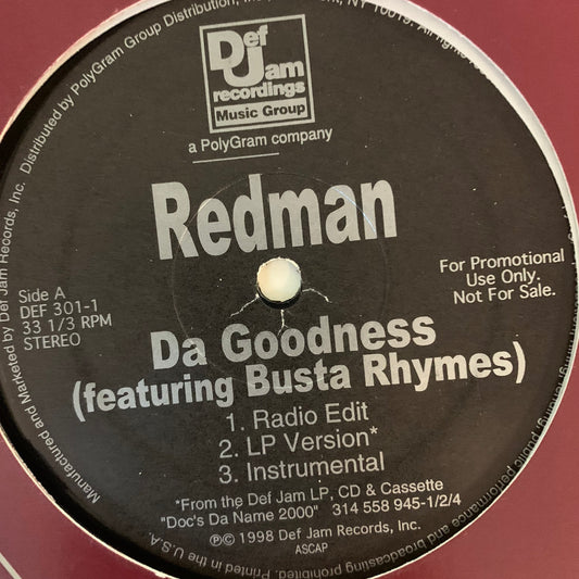 Redman “Da Goodness” 3 Track 12inch Vinyl