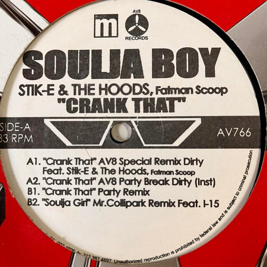 Soulja Boy “Crank That” AV8 Remix 4 Version 12inc h Vinyl