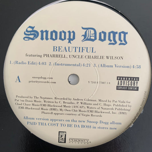 Snoop Dogg Feat Pharrell & Charlie Wilson “Beautiful” / “Ballin” Feat The Dramatics and Lil Half Dead 5 Version 12inch Vinyl