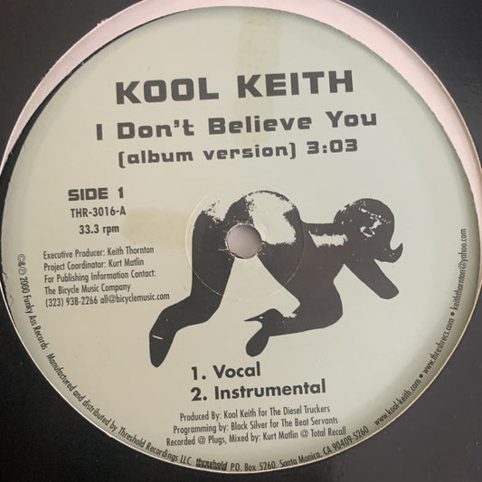 Kool Keith “I Don’t Believe You” 4 Version 12inch Vinyl