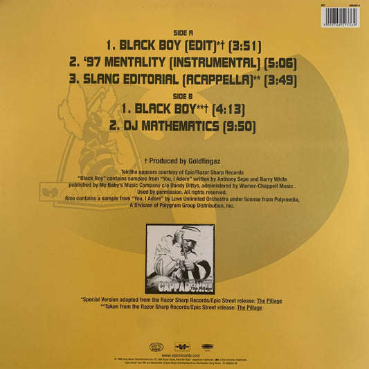Cappadonna “Black Boy” 5 Track 12inch Vinyl, Featuring “97 Mentality” Instrumental, “Slang Editorial”