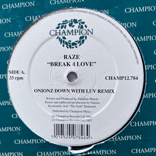 Raze “Break 4 Love” 3 Version 12inch Vinyl Record on Champion Records
