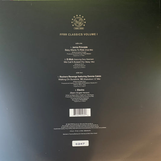 FFRR Classics Vol 1 Feat Jamie Principle, D-Mob, Rockers Revenge and Electra 4 Track 12inch Vinyl