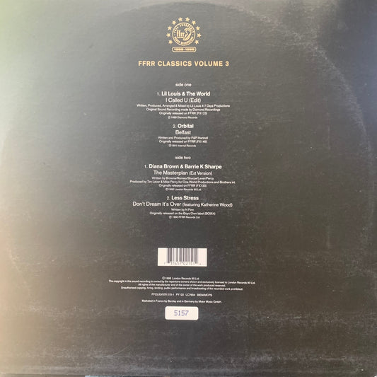 FFRR Classics Vol 3 Feat Lil Louis & The World, Orbital, Diana Brown and Less Stress, 4 Track 12inch Vinyl