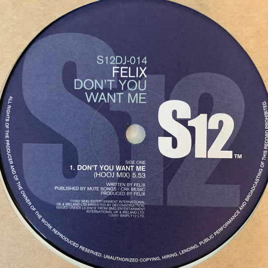 Felix “Don’t You Want Me” Hooj Mix 1 Track 12inch Vinyl