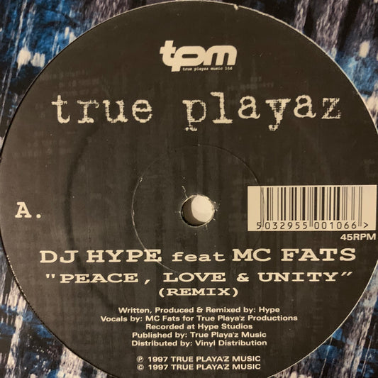 DJ Hype Feat MC Fats “Peace’ Love & Unity” 2 Track 12inch Vinyl