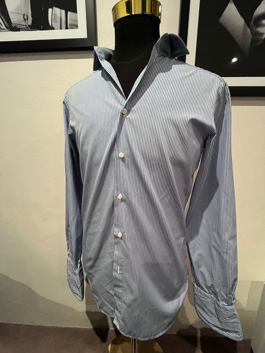 Boss Hugo Boss Selection 100% Cotton Shirt Blue White Strip Size Large