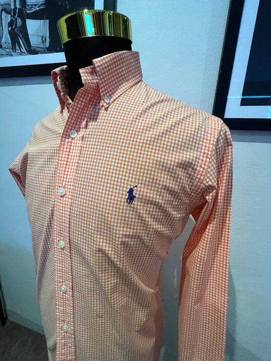 Ralph Lauren 100% Cotton Custom Fit Orange Check Shirt Size M