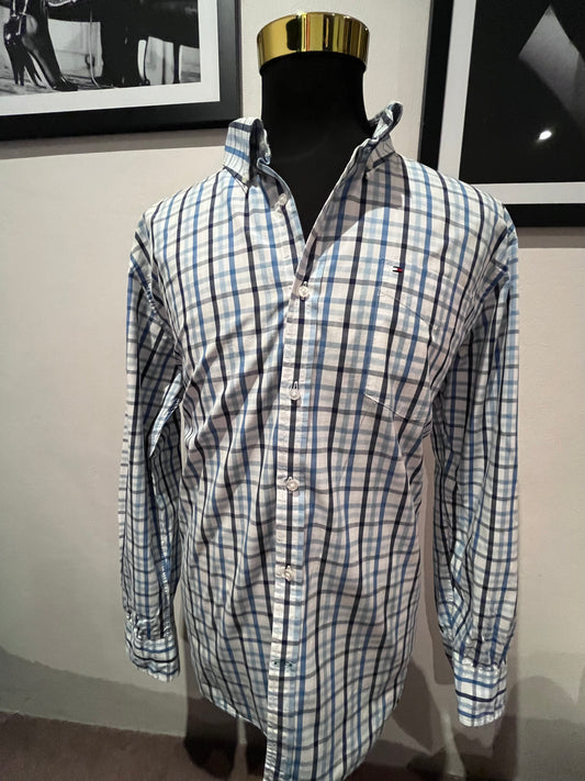 Tommy Hilfiger 100% 2 Ply Fabric Cotton Check Custom Fit Size Large