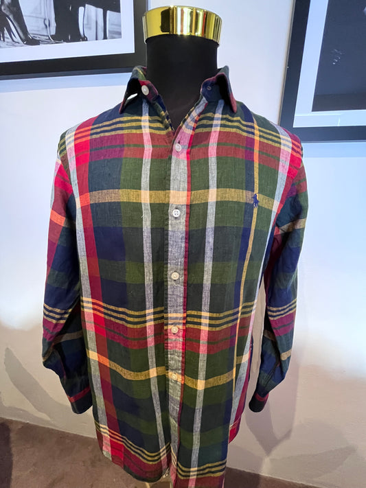 Ralph Lauren 100% Indian Madras Cotton Check Shirt Size Large Custom Fit