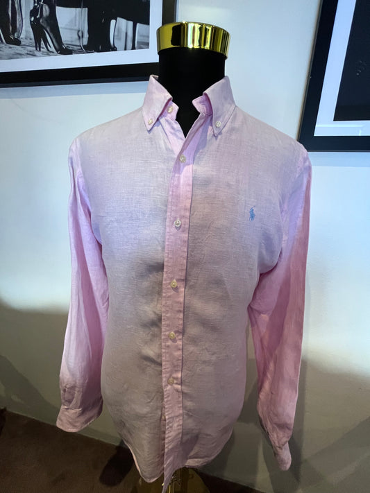 Ralph Lauren 100% Cotton Linen Pink Shirt Size Large Classic Fit