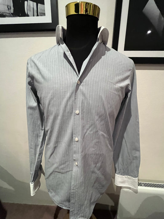 Armani Armani Jeans 100% Cotton White / Grey Stripe Shirt Size S