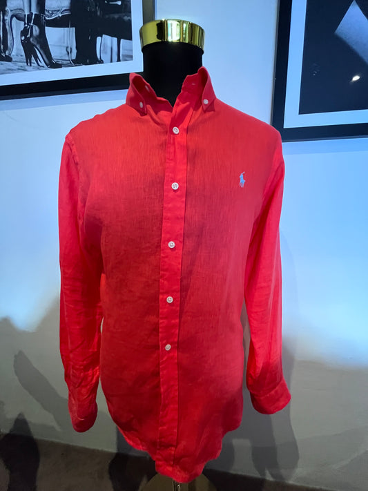 Ralph Lauren 100% Cotton Linen Red Shirt Size Large Classic Fit