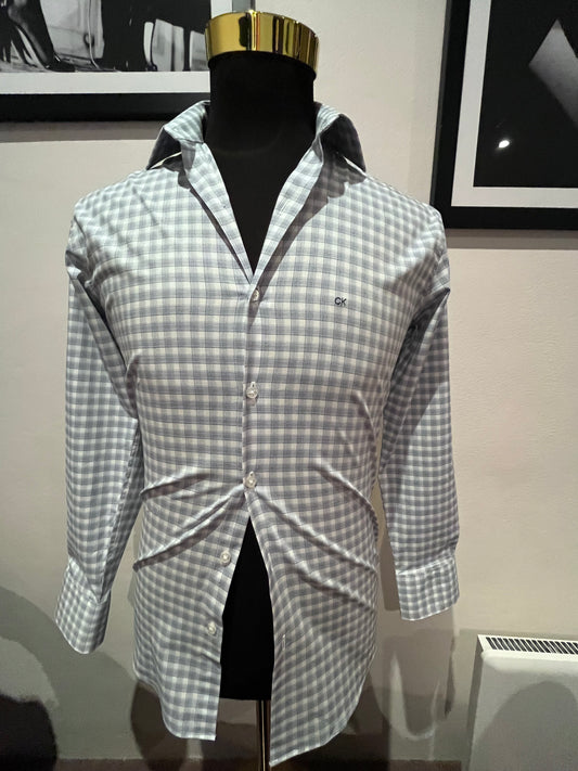 Calvin Klein Organic Cotton Blend Blue White Check Shirt Size Small