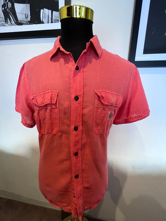 Stone Island 100% Cotton Linen Salmon Pink Shirt Size XL Made in Italy