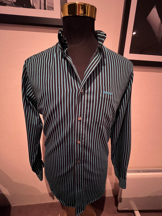 Pringle of Scotland 100% Blue Black Stripe Cotton Shirt Size Large Button Down Collar