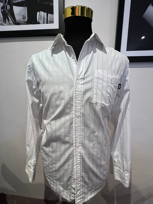 Stussy 100% Cotton White Pin Stripe Shirt Size Medium Fits M to L