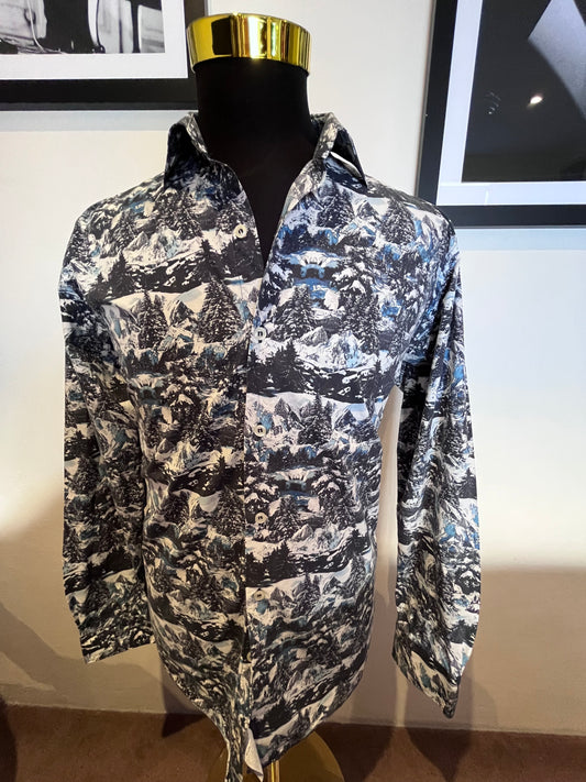 Paul & Shark 100% Cotton Alpine Print Shirt Size Large 42 Made in Italy