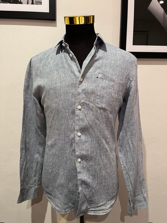 The Academy Brand 100% Linen Cotton Blue Shirt Size Medium Slim Fit