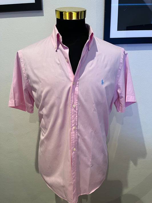 Ralph Lauren 100% Cotton Feather Weight Twill Pink Short Sleeve Shirt Size L