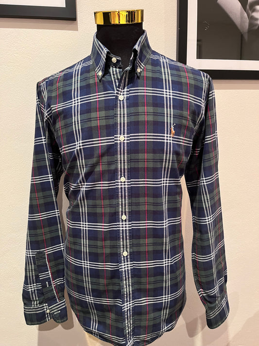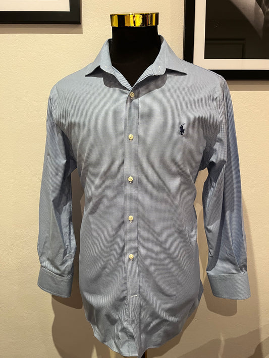 Ralph Lauren 100% Stretch Cotton Slim Fit Blue Check Shirt Size Large