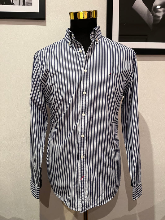 Tommy Hilfiger New York Fit 100% Cotton Blue White Stripe Shirt Size Large