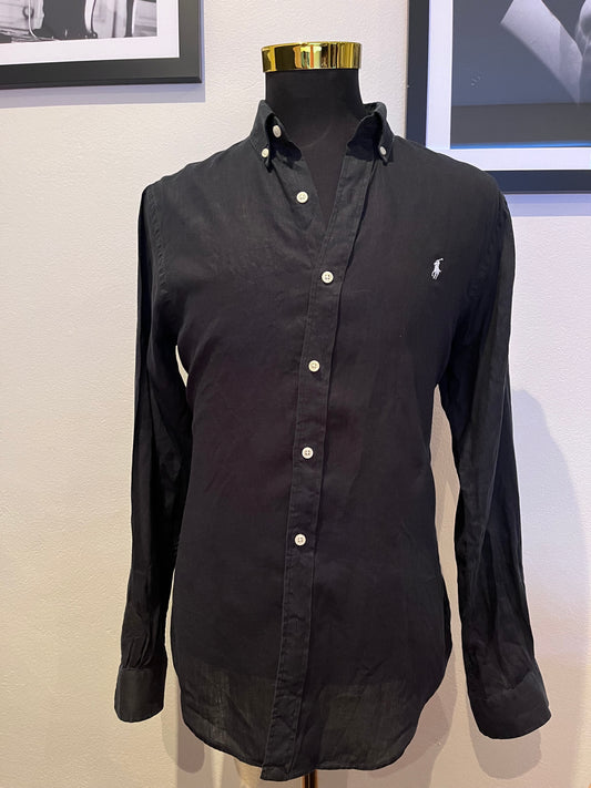 Ralph Lauren 100% Cotton Linen Black Slim Fit Shirt Size Large