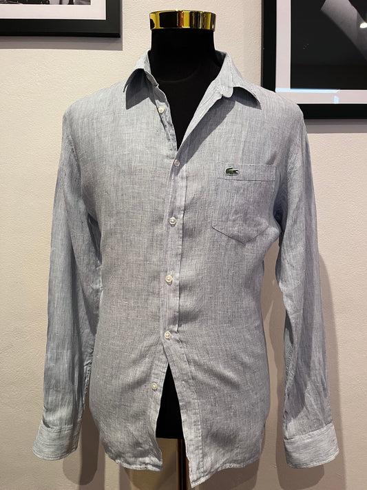 Lacoste 100% Linen Cotton Blue White Pin Stripe Shirt Size Large Classic Fit