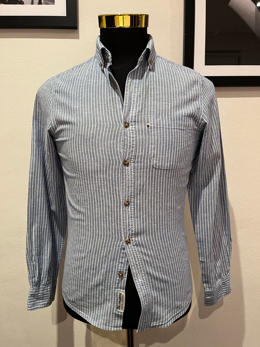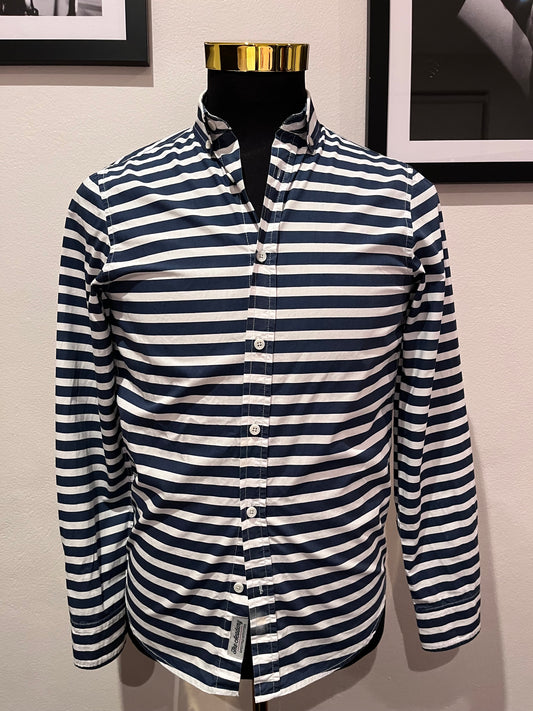 The Academy Brand 100% Cotton Blue White Stripe Shirt Size XS Slim Fit