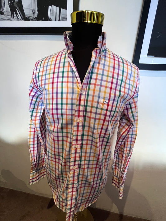 Paul & Shark 100% Cotton White Check Shirt Size 40 Medium Made in Italy