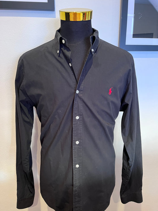 Ralph Lauren 100% Stretch Cotton Black Slim Fit Shirt Size XL fits more like a Large
