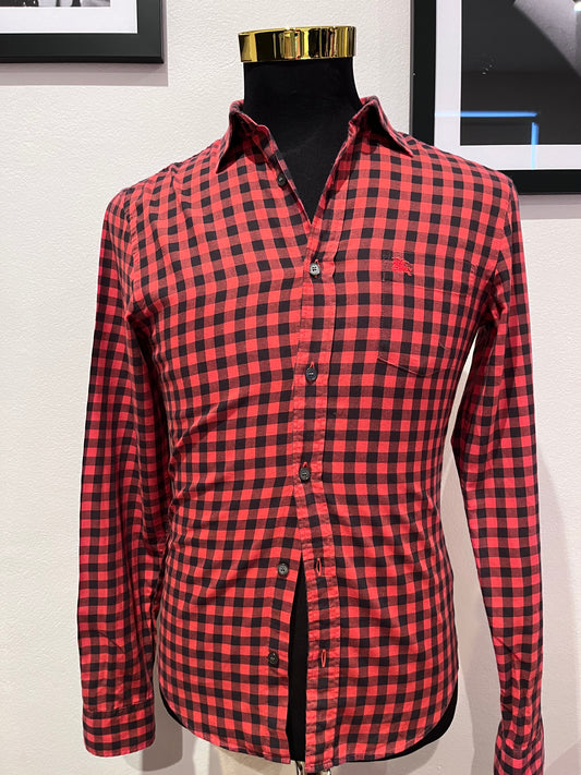 Burberry Brit 100% Cotton Logo Pocket Red Black Check Shirt Size Small Slim Fit