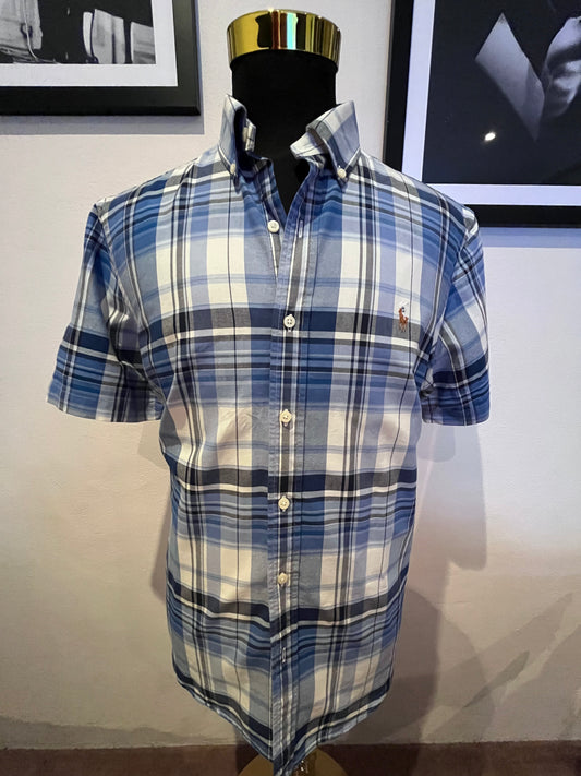 Ralph Lauren 100% Cotton Blue / White Check Short Sleeve Classic Fit Shirt Size L