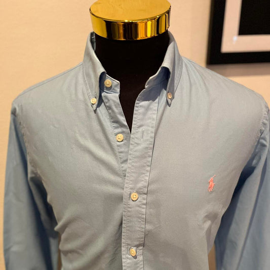Ralph Lauren 100% Cotton Custom Pastel Blue Fit Logo Print Shirt Size XL