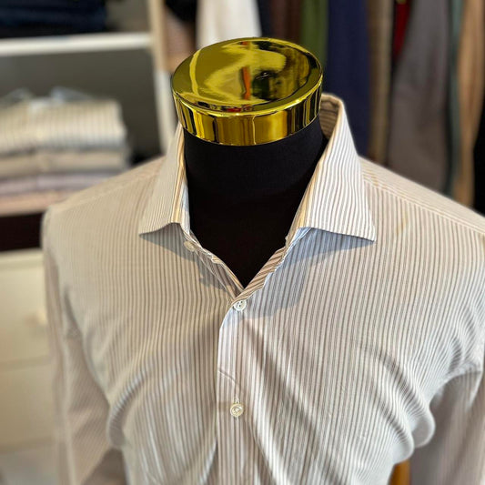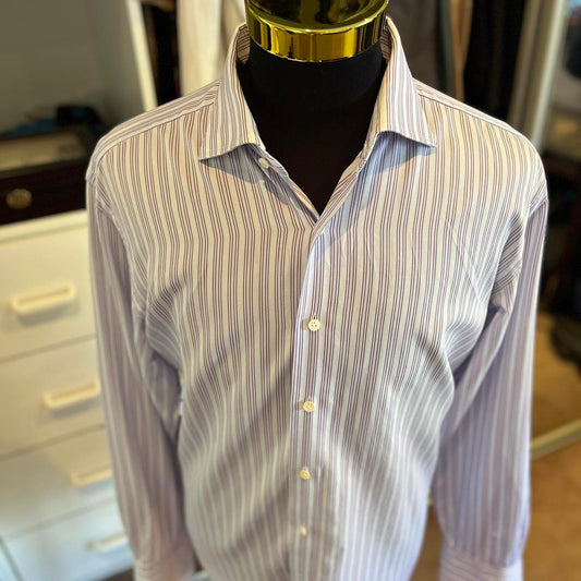 Armani, Armani Collezioni 100% Cotton Brown and White Stripe Business Shirt Size XL 45/18 with Double Cuff Made In Italy