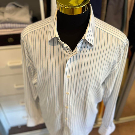 Ermenegildo Zegna 100% Cotton Blue White Stripe Business Shirt Size XL 46/18 Double Cuff Made in Switzerland