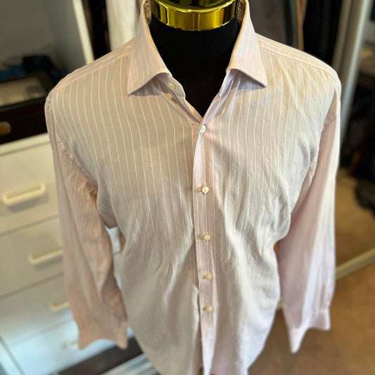 Ermenegildo Zegna 100% Cotton Pink White Stripe Business Shirt Size XL 44/17.5 French Cuff Made in Switzerland