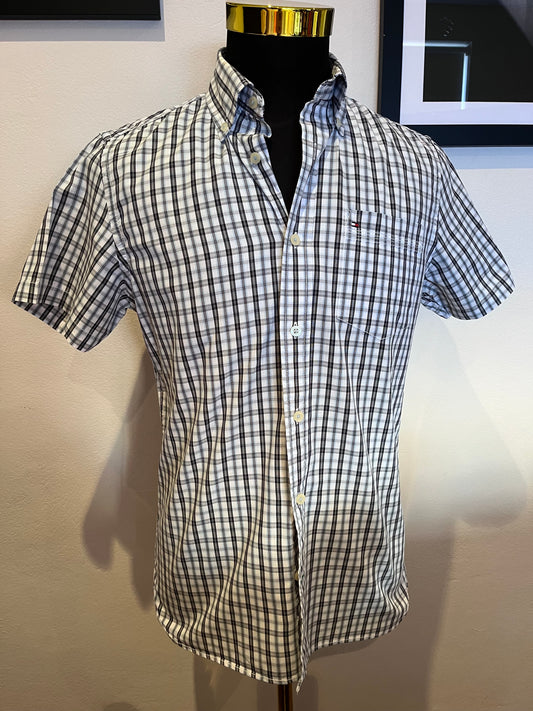 Tommy Hilfiger Custom Fit 100% Cotton Blue White Check Shirt Size Large