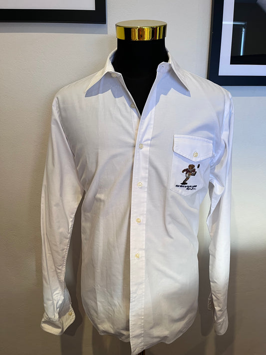 Ralph Lauren 100% Cotton Classic Fit White Shirt Size Large Teddy Bear Motif