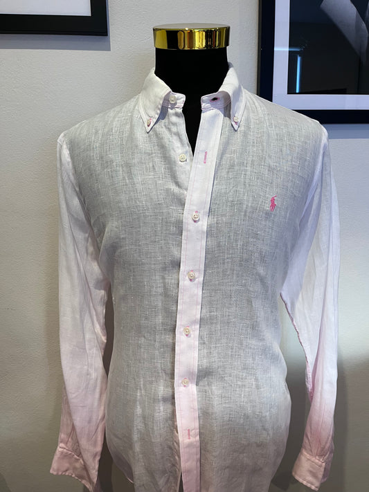 Ralph Lauren Pink 100% Linen Cotton Shirt Size Large Slim Fit Polo Ralph Lauren