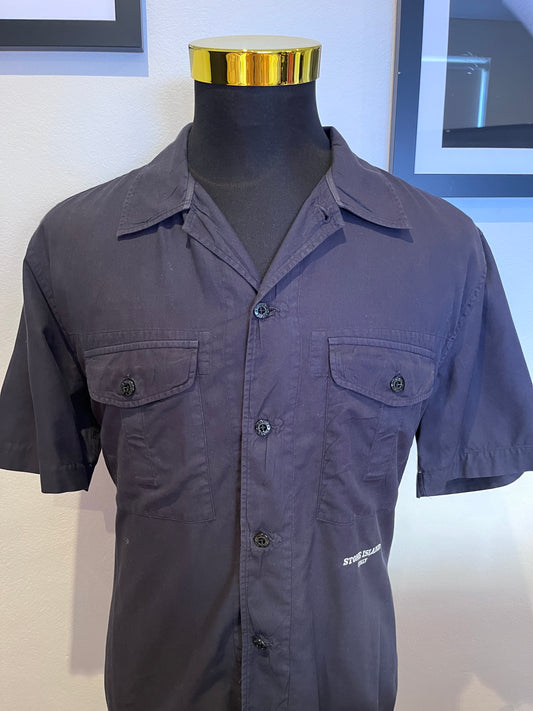 Stone Island 100% Cotton Vintage Short Sleeve Shirt Navy Blue Size Large Regular Fit