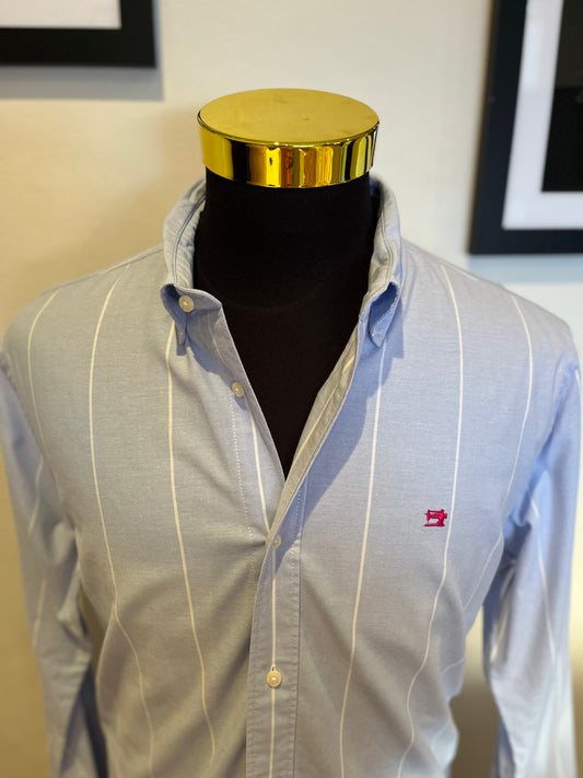 Scotch & Soda 100% Cotton Blue / White Stripe Oxford Shirt Size XL Regular Fit