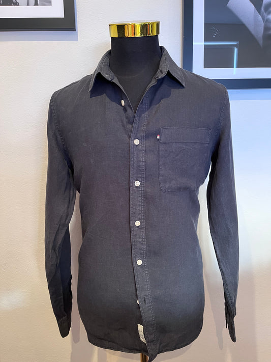 The Academy Brand 100% Linen Cotton Black Shirt Size Medium Slim Fit