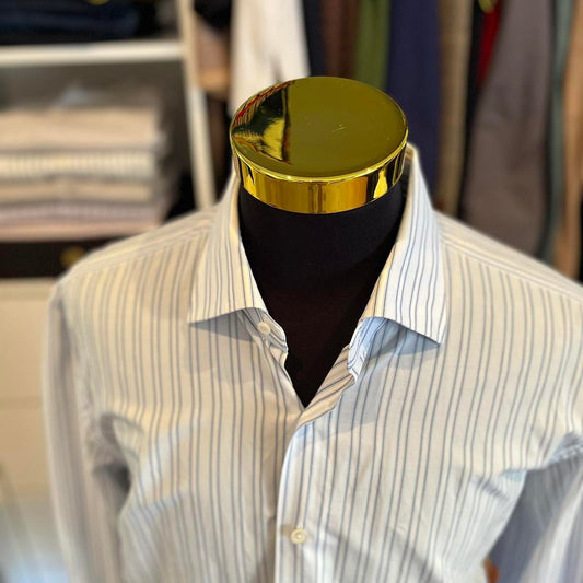 Ermenegildo Zegna 100% Cotton Blue White Stripe Business Shirt Size XL 46/18 Double Cuff Made in Switzerland