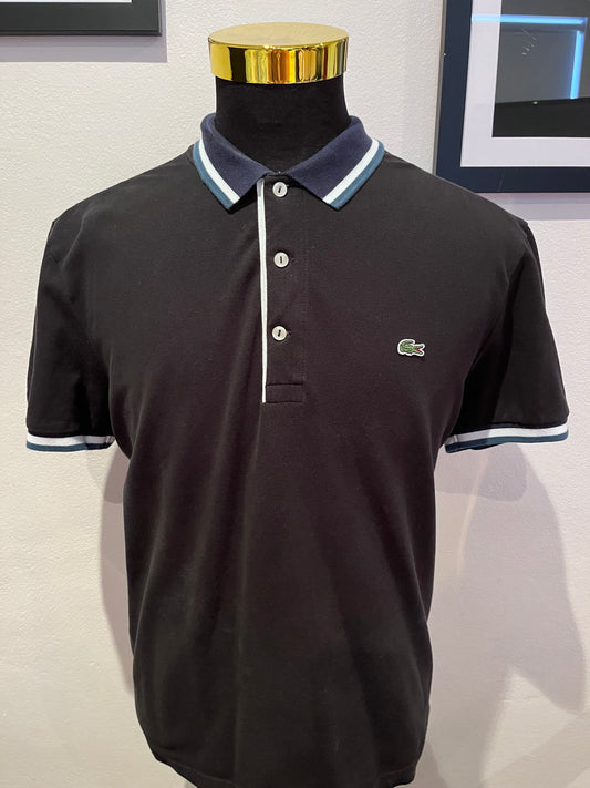 Lacoste 100% Cotton Black 3 Tone Collar Polo Shirt Size XL Regular Fit