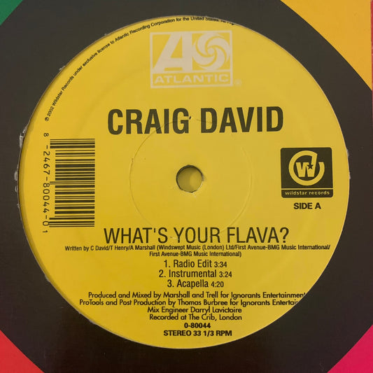 Craig David “What’s Your Flava” 2 x 12inch Vinyl Double Pack,